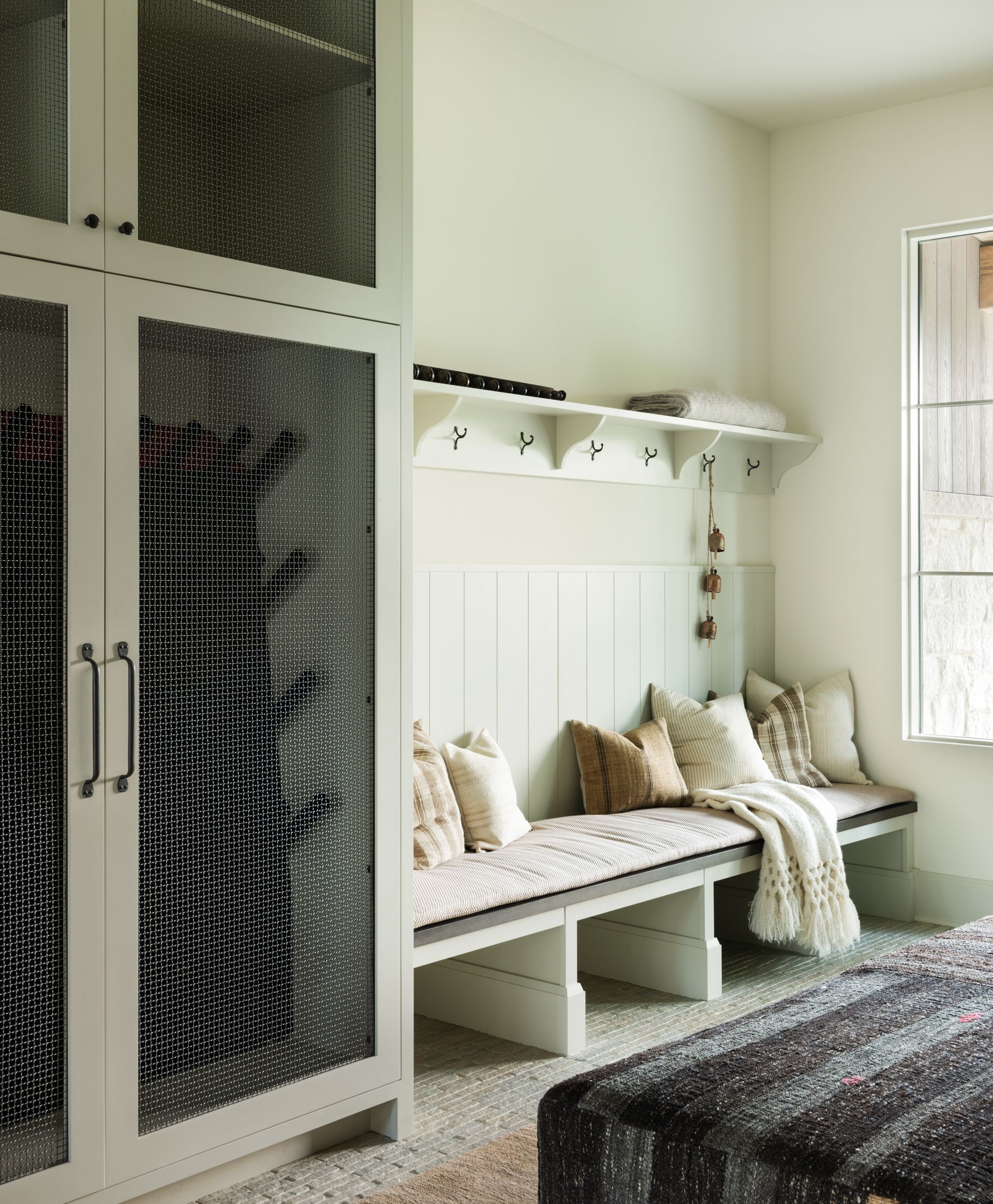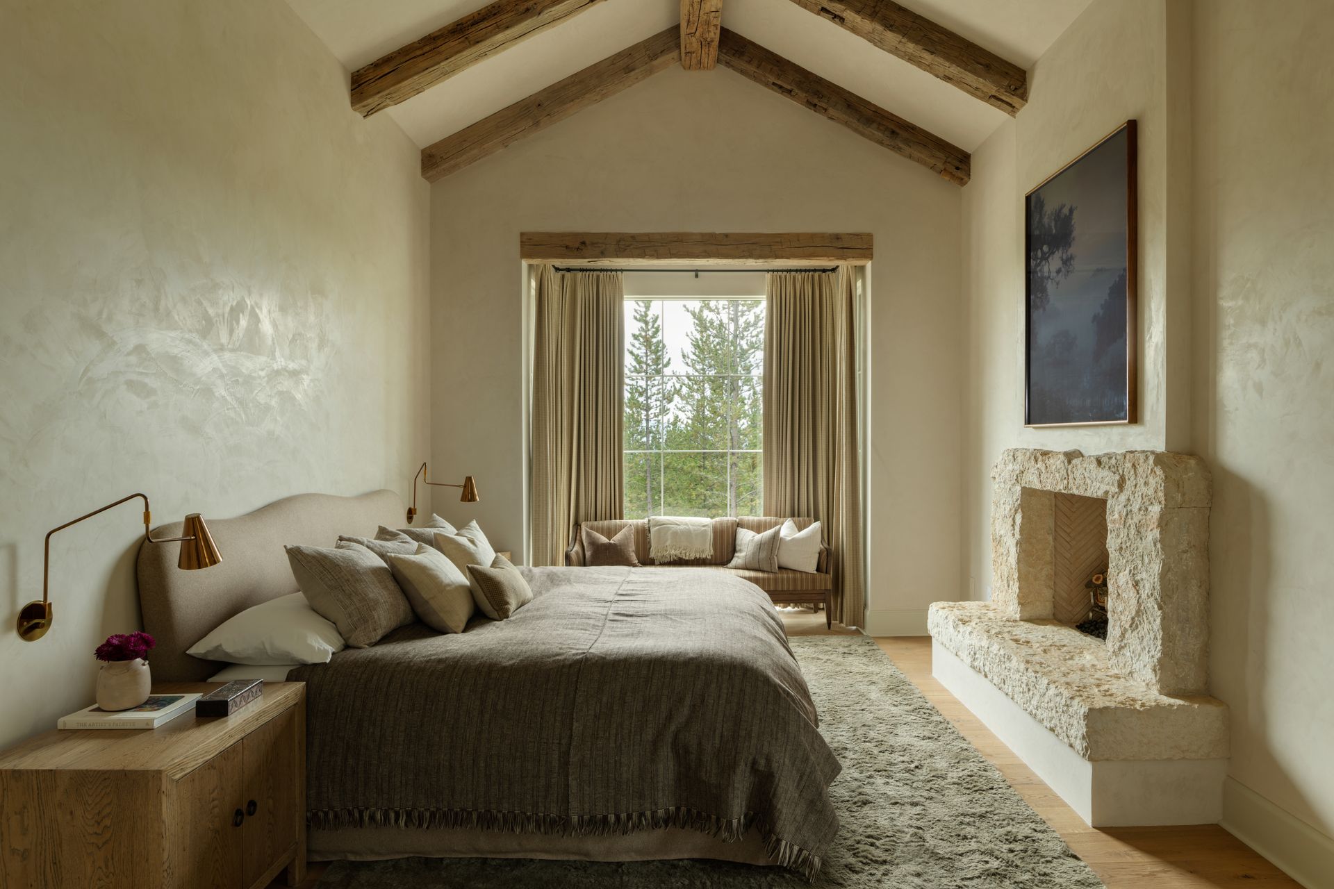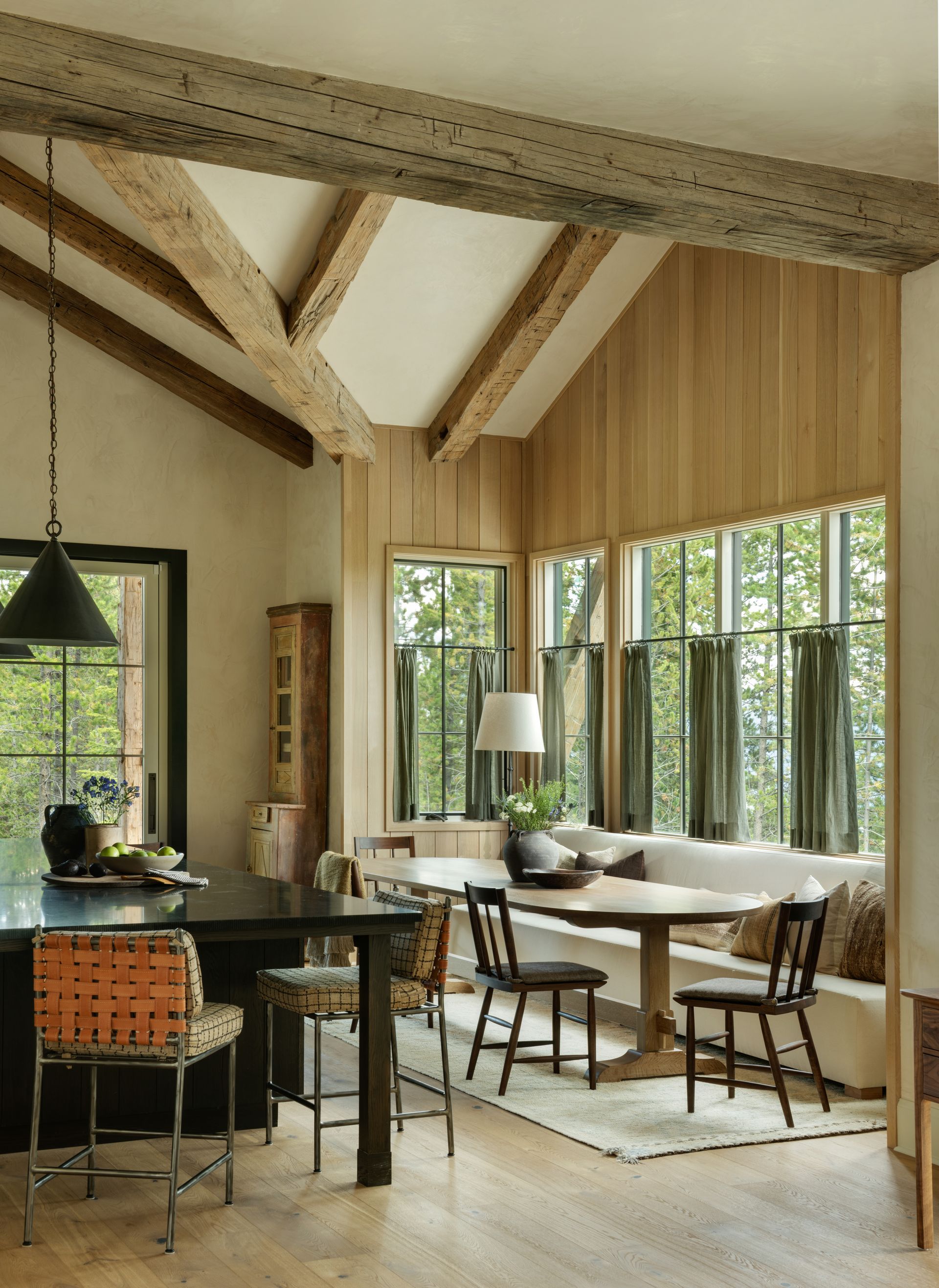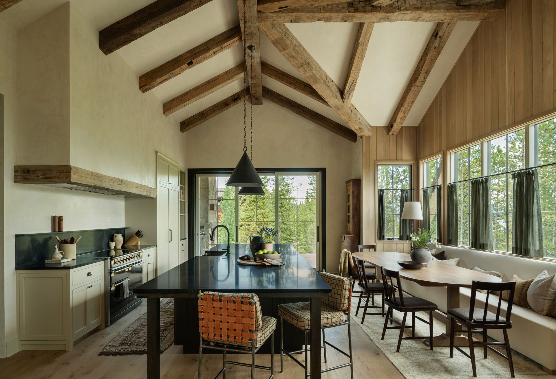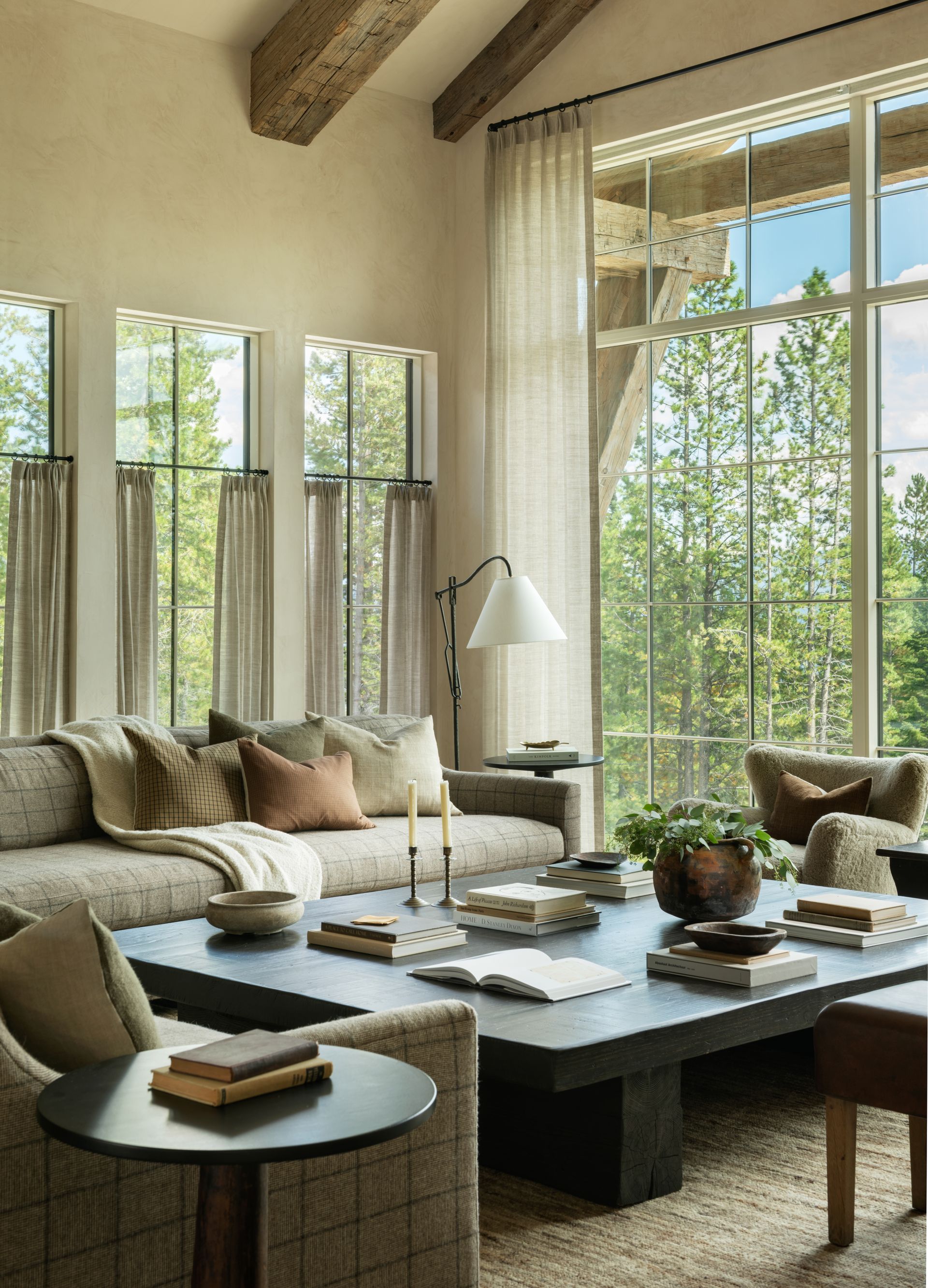 Sitting in the Ski Tip Glades of Spanish Peaks Mountain Club. Soft colors and textures are bathed on the exterior and interior with hand hewn timbes as the subtle emphasis.